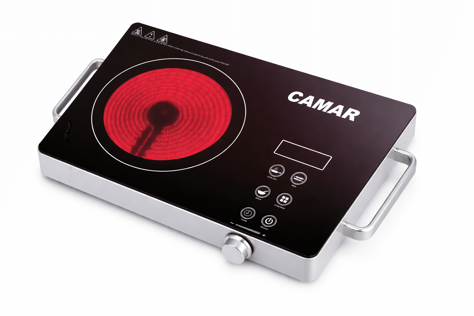 استمتع بتجربة طهي عملية وسريعة مع موقد CAMAR الكهربائي السيراميك المصمم ليمنحك أداءً قوياً ومظهراً أنيقاً في نفس الوقت. مثالي للاستخدام المنزلي، المكتب، الشاليهات أو الرحلات.