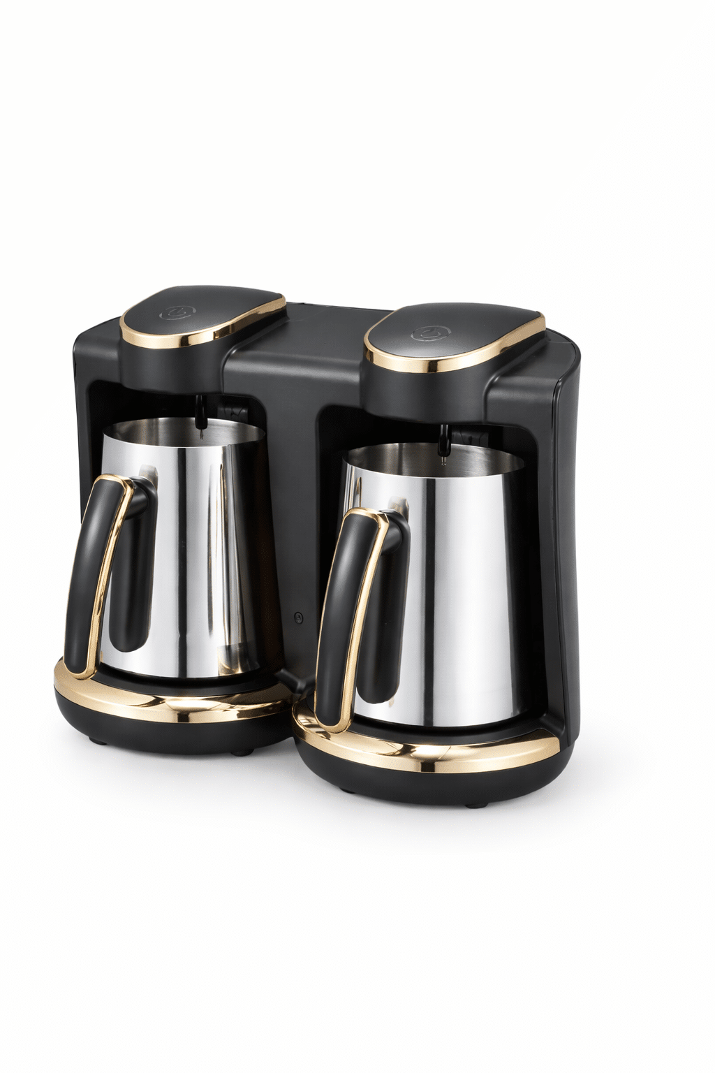 دلّل عيلتك وضيوفك بقهوة طازجة في نفس الوقت مع ماكينة القهوة الثنائية من GoldVision. تصميم عملي بوعائين مستقلين يمنحك سرعة وكفاءة أعلى، مع لمسات فاخرة باللون الأسود والذهبي تضيف أناقة مميزة لمطبخك.
