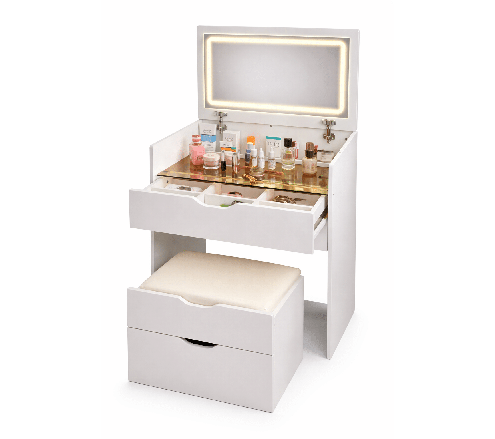 • درج علوي مقسّم لتسهيل تنظيم أدوات المكياج.